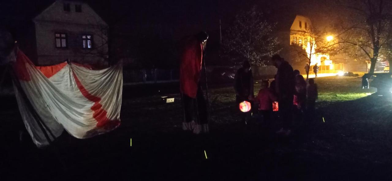 Sraz byl u kapličky, kde na nás čekalo strašidelné Divadlo V Pytli, které se spolu s námi vydalo na lampiónový průvod. Po návratu čekal na děti halloweenský dance a pak už mohla začít stezka odvahy, která byla jen pro odvážlivce. Na všechny, kteří se na stezku vydali a přežili :-), čekal balíček plný odměn a hračka. Do soutěže o nejhezčí vydlabanou dýni přineslo svůj výtvor deset soutěžících, z nichž se nejvíce všem přítomným líbila dýně Andrejky Markové, Elišky Kubáčové a Nikolky Čermákové. Děkujeme všem, kteří si halloween užili spolu s námi a už se těšíme na halloween v roce 2023.