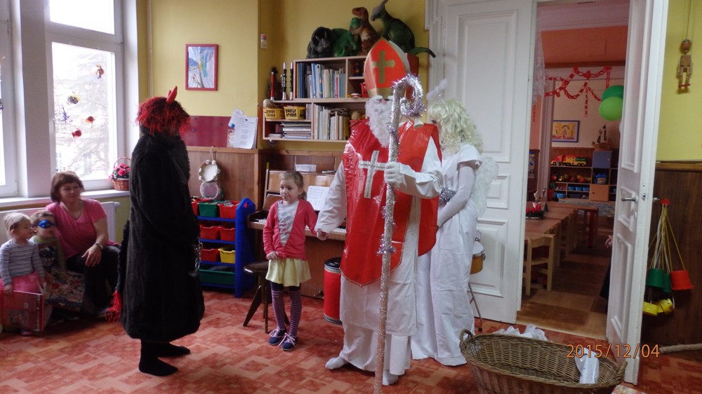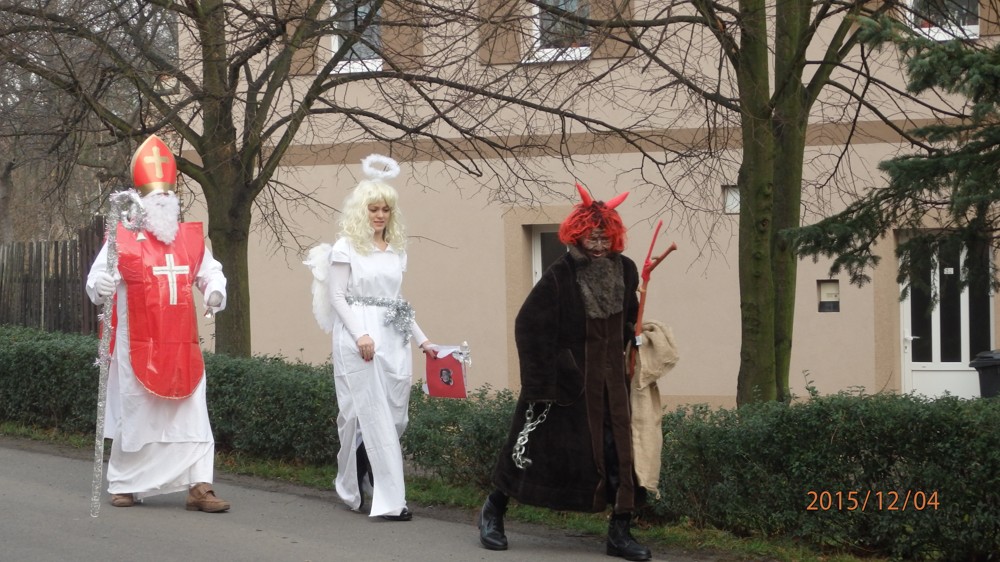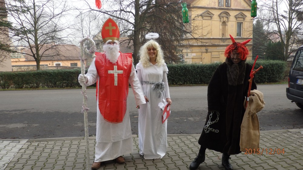 I letos přišel Mikuláš, coby hodný pán, který dává dětem marcipán. Čertík, ten zase trochu pozlobil malé uličníky a nechyběl ani krásný andílek, který rozdával dětem sladkosti a hlavně spoustu vitamínů. Děti nešetřily krásnými básničkami a písničkami a rozloučily se s naší trojicí, jak jinak, než slibem, že budou už jen hodné.