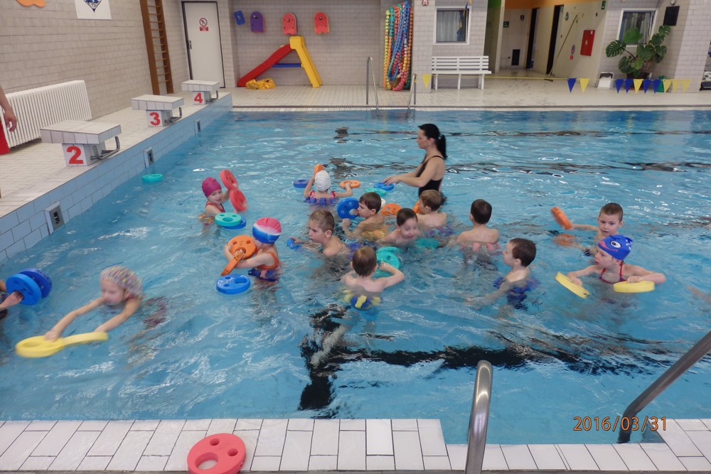 Naše děti, společně s kamarády z jeníkovské školky, začaly dojíždět do plavecké haly v Krupce, kde se zúčastní plavecké výuky.