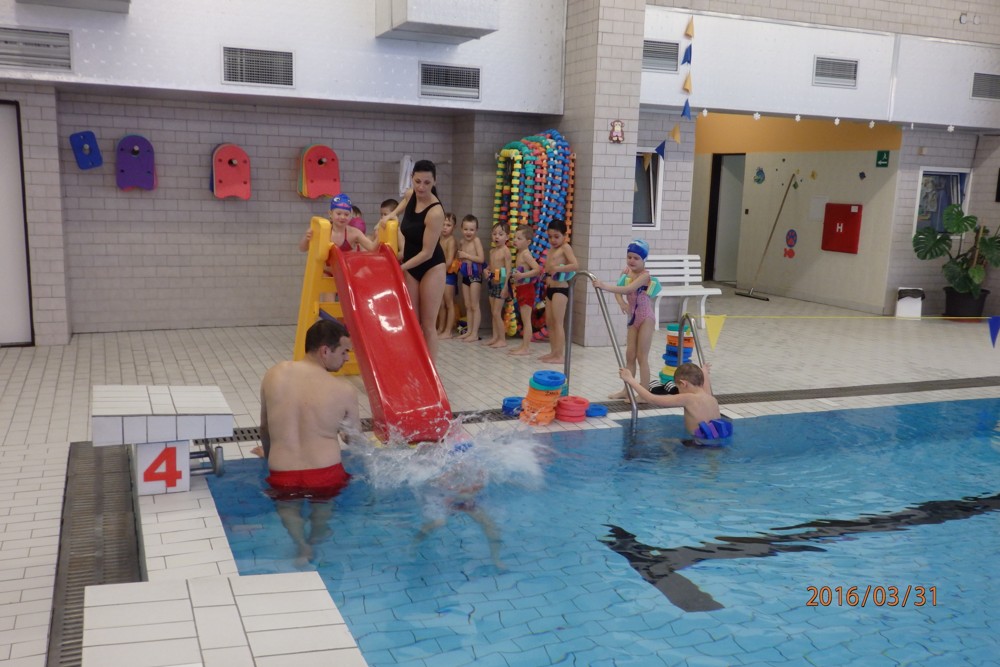 Do bazénu dorazily s úsměvem a ten vydržel téměř všem až do konce. Někteří naši kamarádi jsou již nyní zdatnými plavci, tak se nám všem pochlubili, co vše už zvládají. První lekce se zdařila, děti byly od plavčíků velice chválené. Za odměnu se mohly na závěr klouzat po skluzavce rovnou do vody.