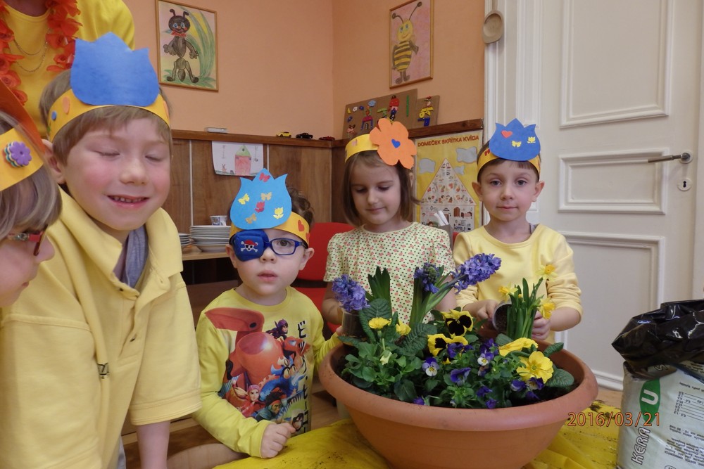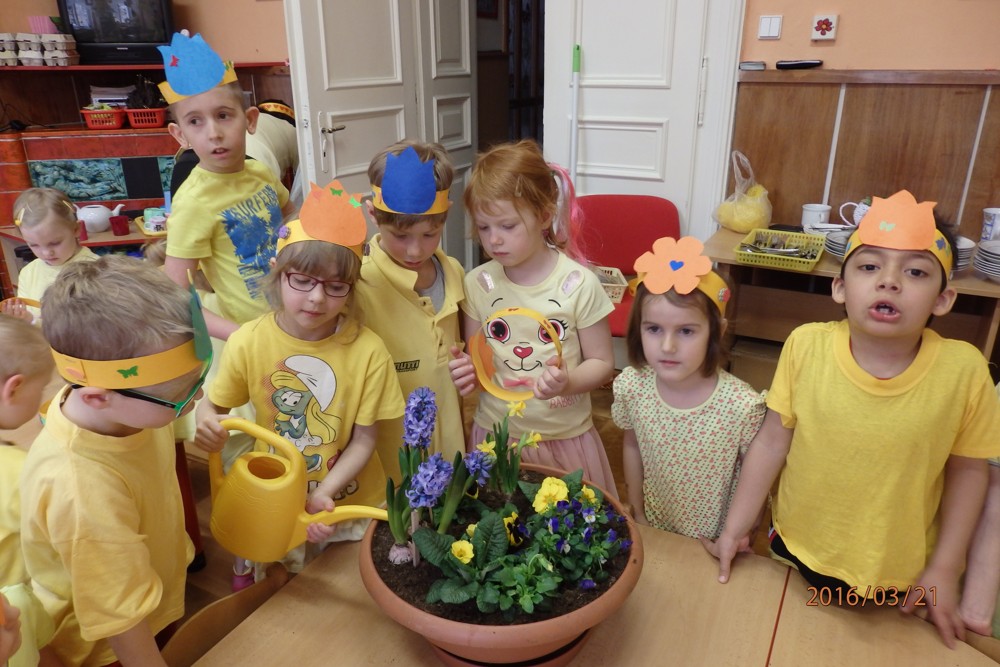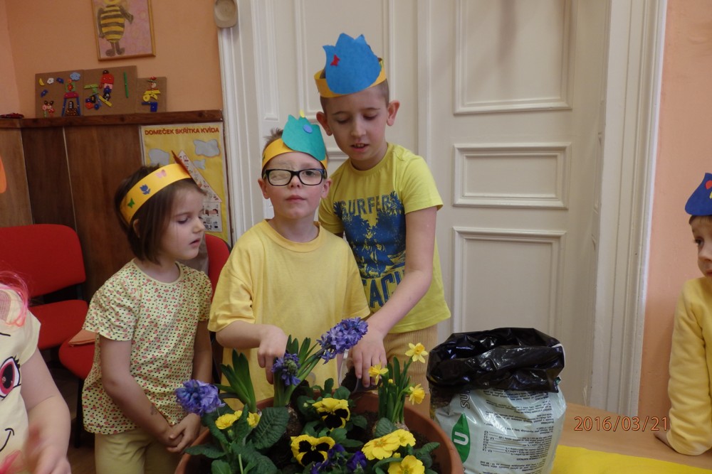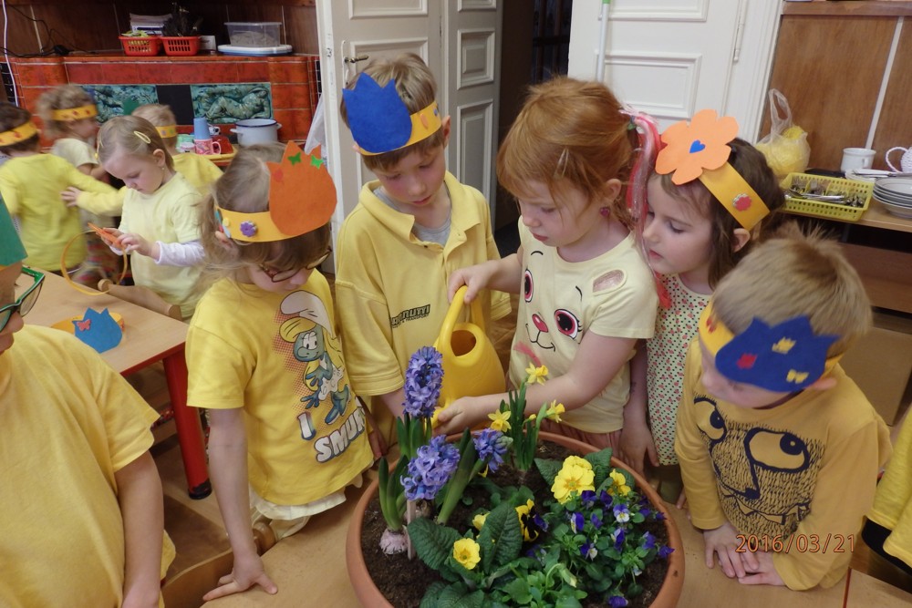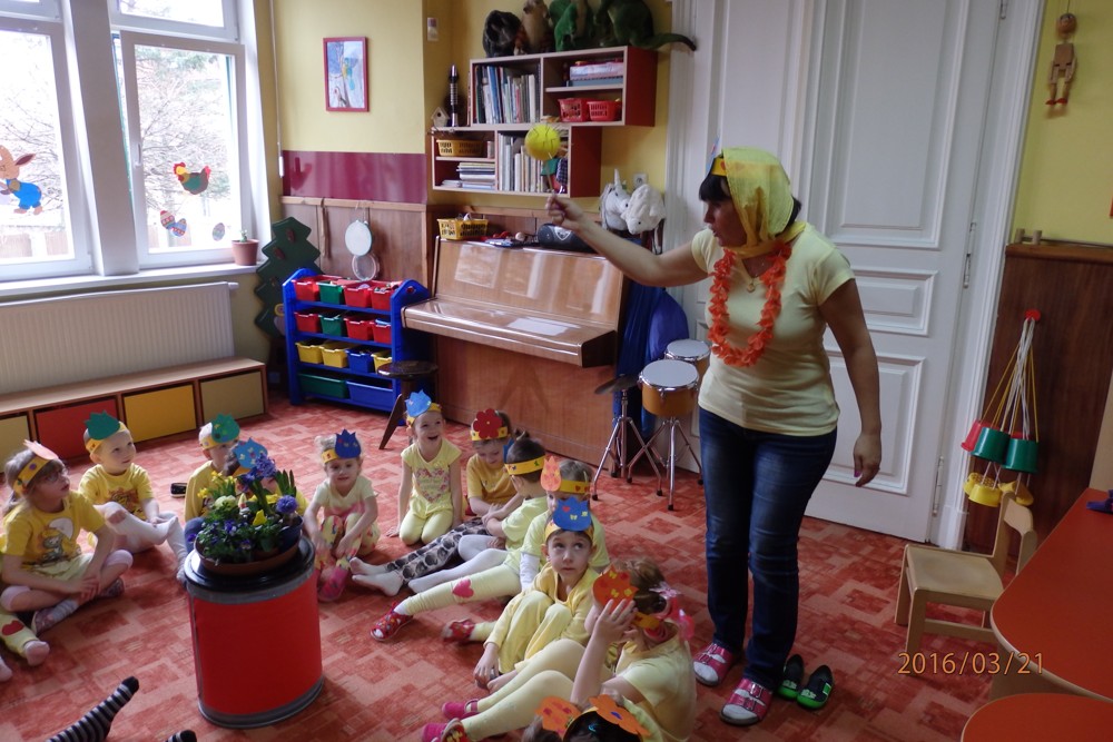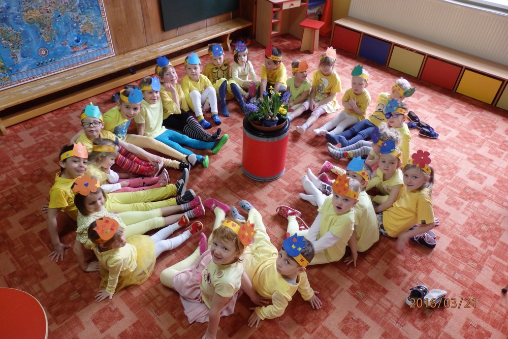Dnes jsme ve školce vítali jaro, a proto všichni přišli převlečeni do žlutého.