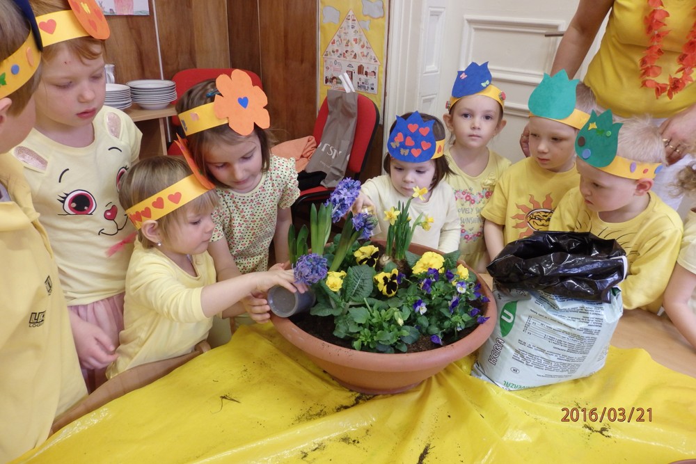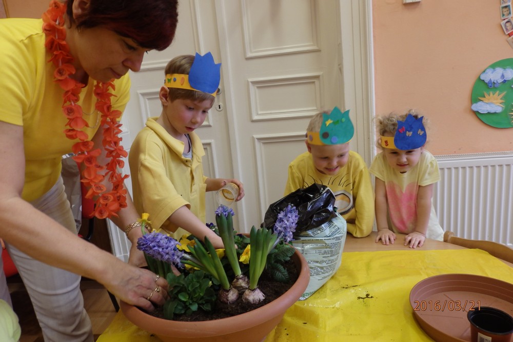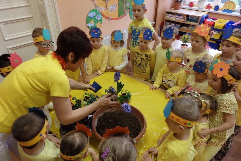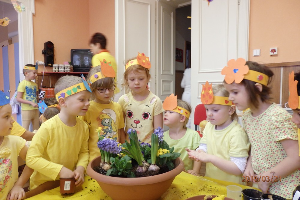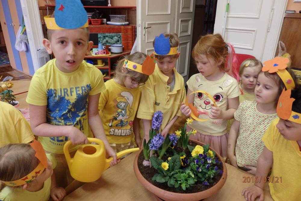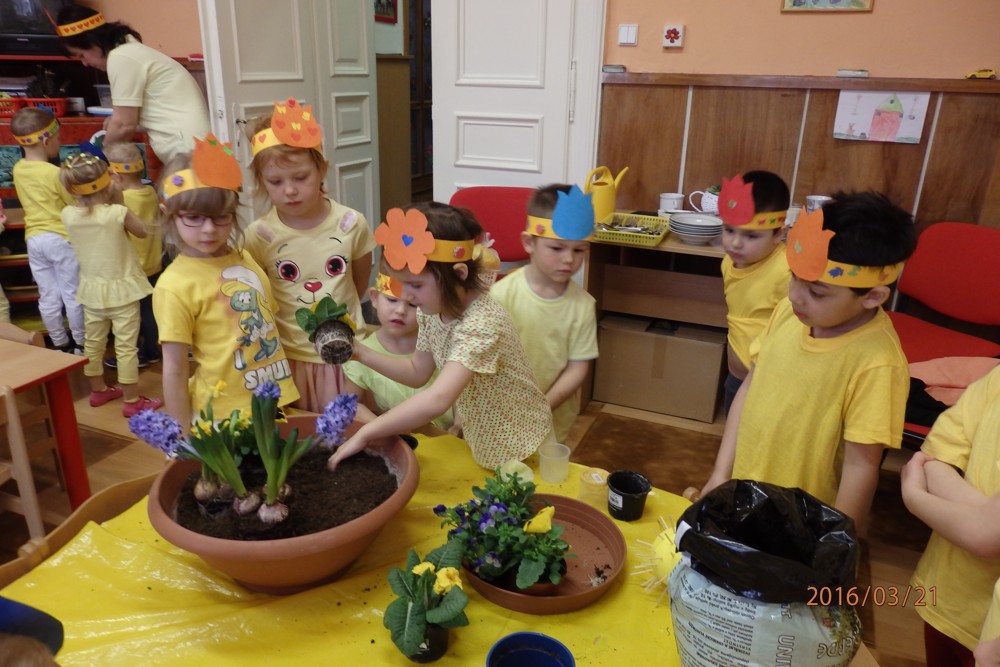 Dnes jsme ve školce vítali jaro, a proto všichni přišli převlečeni do žlutého.