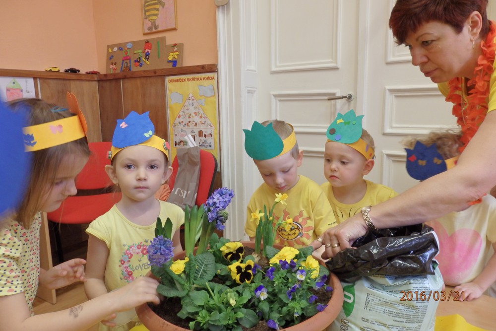 Děti zasadily malou jarní zahrádku, ale musely ji hlídat před přízemním mrazíkem, který se stále ještě snaží ovládat přírodu a kytičky spálit.
